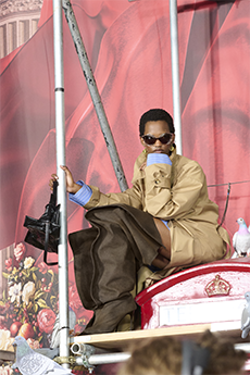 Marching band uniforms, plastic coated protection, power broker tailoring and antique handcrafted quilting, workwear and westernwear made for this unique parade. The collection finds equal merit in folk and function, food court and courtroom in a romantic and filmic outsider's view of the uniqueness of America.